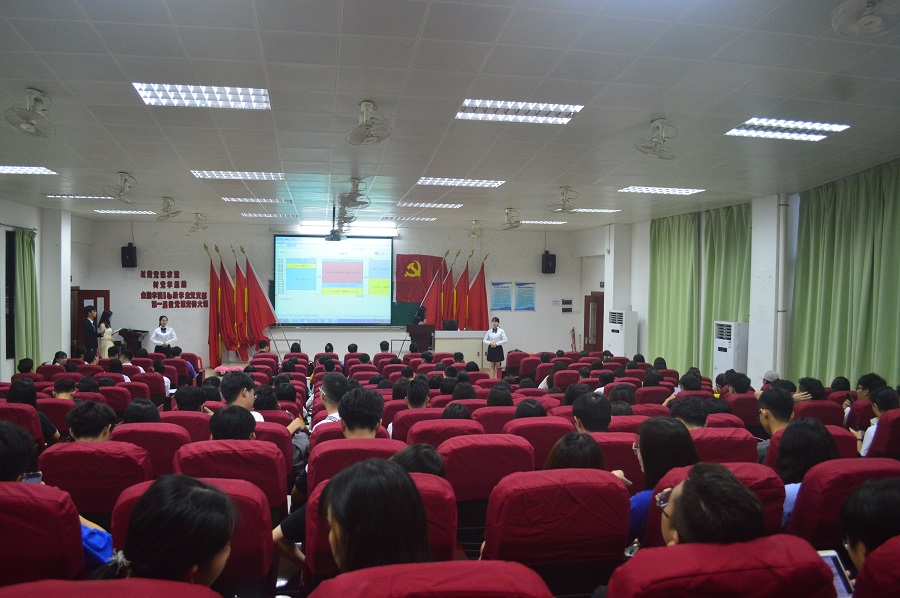 为学习贯彻落实习近平新时代中国特色社会主义思想,增强大学生党员党性修养,充分发挥学生党员的先锋模范作用,金融学院16级学生党支部于3月12日至4月4日开展了为期四周的初赛评比,经过激烈的角逐以及支部书记的亲自指导,最终有8位党员同志脱颖而出晋级决赛,决赛于2019年4月9日在第四教学楼第二学术报告厅举行。出席本次竞赛活动的有金融学院党总支张雪梅书记、金融学院陈德余副院长以及各年级辅导员。活动由林宇思、向磊主持。