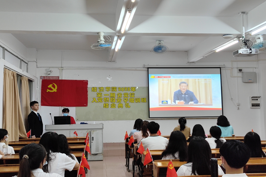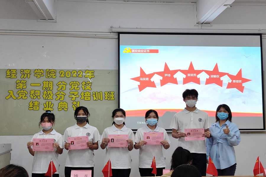 6月1日,经济学院2022年第一期分党校入党积极分子培训班结业典礼于三教206顺利举行。出席本次活动的有经济学院党总支组织委员姚凡、2018级第一学生党支部书记魏楚玲、2018级第二学生党支部书记巫进娣、2019级第一学生党支部书记陈丽红、2019级第二学生党支部书记钟泽婷以及本期入党积极分子。本次活动由党总支助理团党建组陈冠良主持。