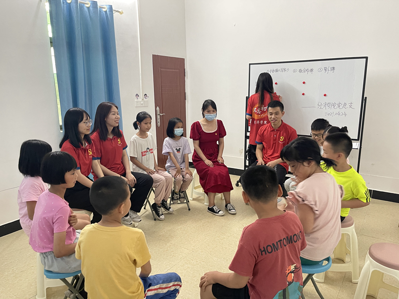 为献礼建党百年,结合党史教育,引导党员同志学党史、悟思想、办实事、开新局,进一步弘扬奉献、友爱、互助、进步的志愿服务精神。2021年4月24日,经济学院党总支委员姚凡老师带领学生志愿者前往迳下村助农综合服务中心,开展“周六义教,助力成长”第三期课业辅导班以及“春暖花开,迳下踏春”志愿活动。