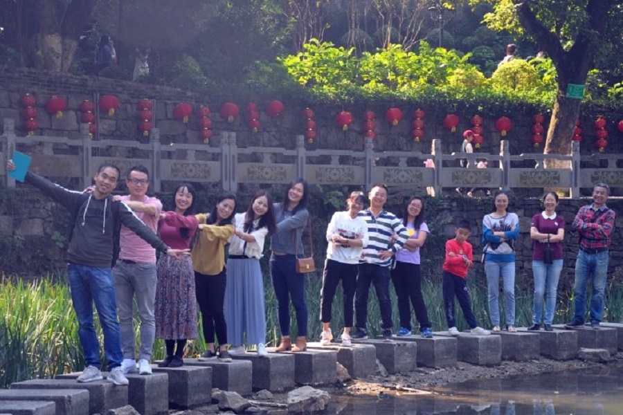 暮色苍茫看爱莲,惠风和畅天赐寿。借问老师哪里去,丛容纵马到贺州。为丰富全体教职工的业余生活,加深会员间沟通交流,增强团队凝聚力,金融学院工会小组于11月2日中午组织全体工会会员前往广西贺州黄姚古镇、姑婆山秋游活动。