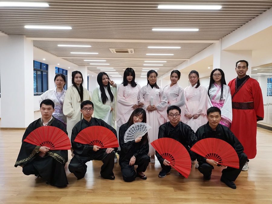 本舞台剧从改写剧本,选择演员,乐器演奏、舞蹈表演、武术表演、书法表演的练习到最终上台演出历时1个多月,蔡青文老师、张素平老师、李玉婷老师、刘海飞老师、何锡智老师、刘思老师、谢瑾媛老师、刘晶老师、冯代欣老师、曾榆桂老师、崔婷婷老师、范瑛琦老师、巫进娣老师、董学林老师、成忠厚老师、刘美岩老师、放济民老师、陈立君老师、徐书林老师、黄景怡老师、黎莉老师、龚晗老师、张夏祎老师等25位老师(排名按出场顺序)在这一个多月里每周至少排练一次,在大家的积极配合和持之以恒下,我们终于以大国工匠精神,表演成功,在晚会中获得三等奖。