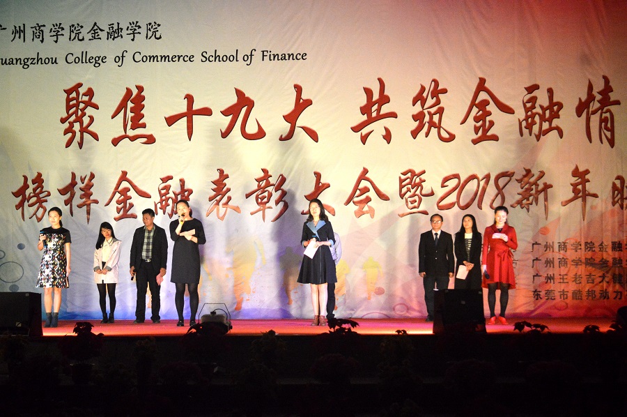 为了总结经验,向榜样人物学习,团结和动员全体同学以更加崭新的思想观念、以更加饱满的精神状态投入到今后的学习中去,金融学院于1月3日晚在四教架空层举办榜样金额表彰大会暨2018新年晚会。出席本次活动的领导和嘉宾包括:金融学院院长陈石清教授,副院长张燕副教授,副院长陈德余副教授,党总支书记张雪梅老师,办公室主任古梅老师,东莞酷绑动力有限公司总经理陈微先生,梁薇老师,范英琦老师,吴茜茜老师,叶剑敏老师,成奕莹老师,梁春芳老师。