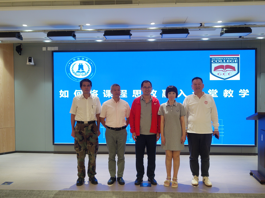 2023年10月9日下午,为提高全院教师的课程思政能力,扎实推进思政育人。经济学院与国际学院在八教201共同举办并邀请暨南大学本科生院教务处副处长,颜海波教授,就如何将课程思政中融入课堂教学开展了一场精彩的主题讲座。经济学院执行院长林学军、教学秘书吴文驰、经济学院教师代表及国际学院教师代表参加此次讲座学习。