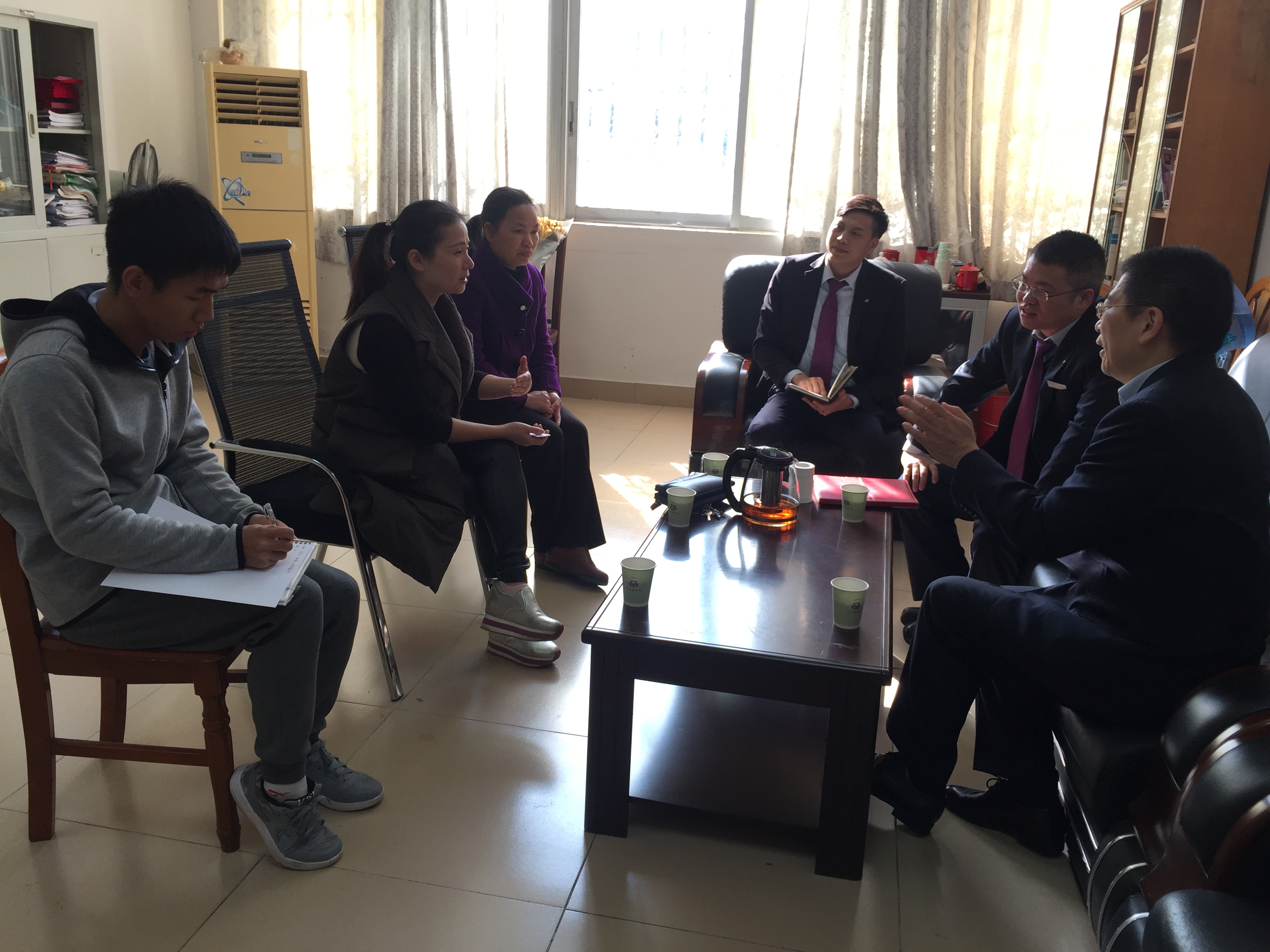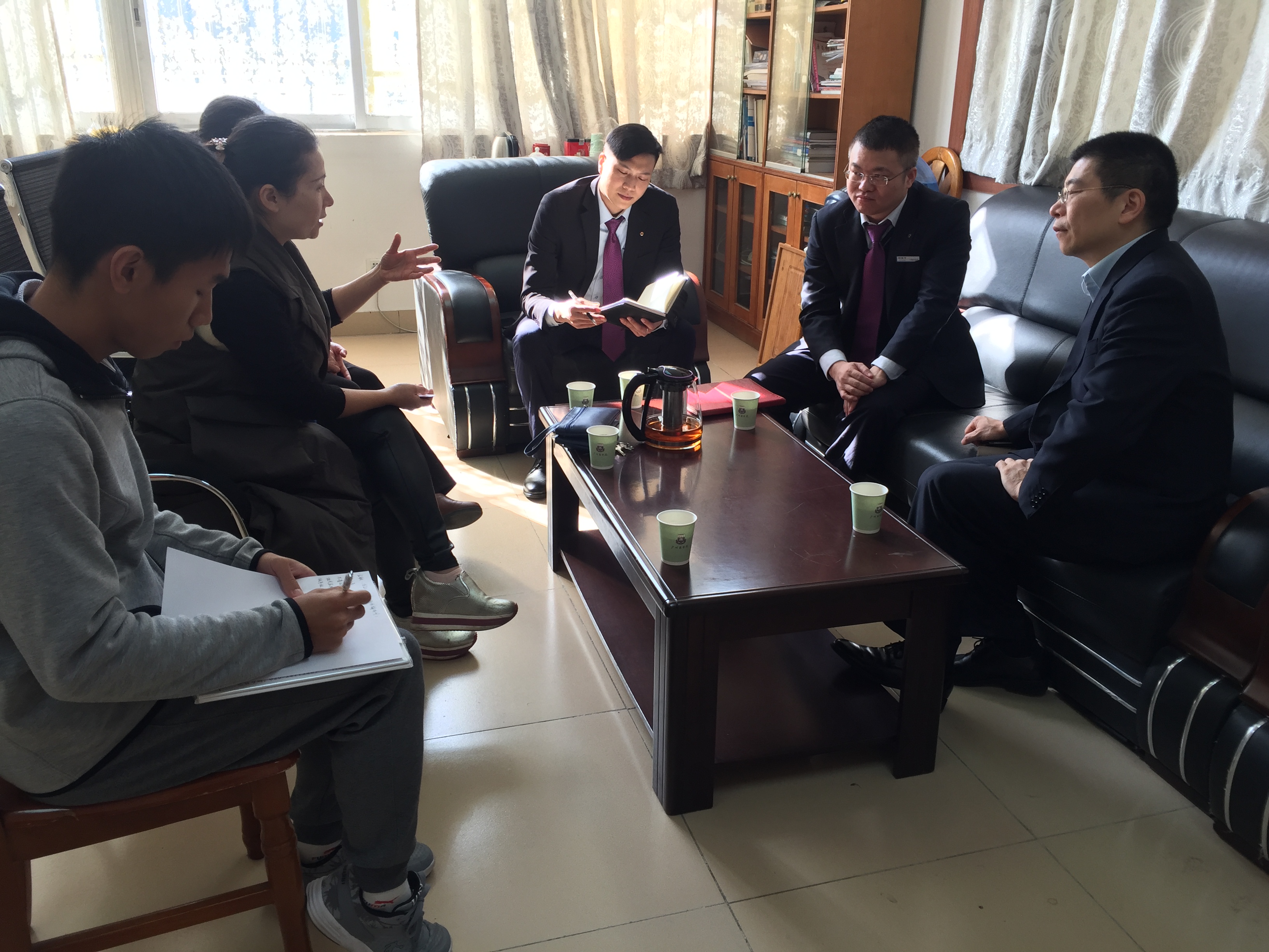 为了促进校企合作,同时增强同学们对贷款骗局的防范意识,提高同学们辨别诈骗骗局的能力,全力营造安全和谐校园环境,金融学院于2018年12月17日在第二行政楼118室开展了防诈骗教育知识的交流,金融学院党总支书记张雪梅及金融学院办公室主任古梅接待了来自中国建设银行广州各支行高层领导一行人。参加来访的有中国建设银行广州中新知识城支行胡育平行长,中国建设银行广州经济技术开发区支行钟振洲副行长,中国建设银行广州中新知识城支行行长助理麦志强。