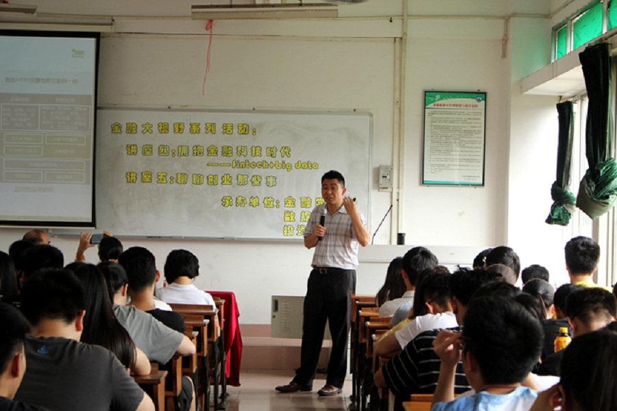 为了扩宽金融学院学子的金融视野,我院于2017年5月10日下午2:30在二教305举行金融大视野的两场专题讲座。第一场由深圳大讯永新科技有限公司副总经理郭育铭先生主讲,讲座主题为拥抱金融科技时代——Fintech+big data ,出席该讲座的嘉宾包括:金融学院院长陈石清教授,副院长张燕副教授,金融学院党总支书记张雪梅,信息工程学院学科带头人阿拉姆博士、深圳大讯永新科技有限公司杨勇董事长以及金融学院部分师生。