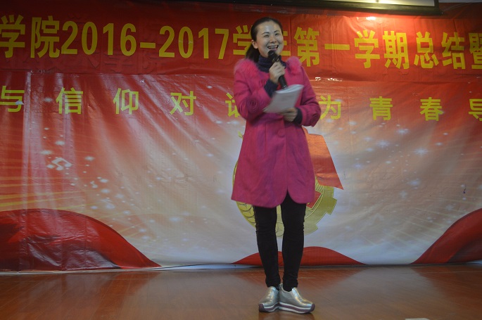 大会由15级辅导员吴茜茜主持,张雪梅在会上作了鼓舞人心的讲话,她指出,学生干部的培养工作颇见成效,宣传工作在大家的共同努力下,经历了从无到有、从有到优的变化,在安全文明教育工作方面,学院严格执行有关文件精神,不可松懈。张雪梅也肯定了本学期以来取得的所有成绩,并表示这些成绩都离不开老师的指导和学生干部的付出。