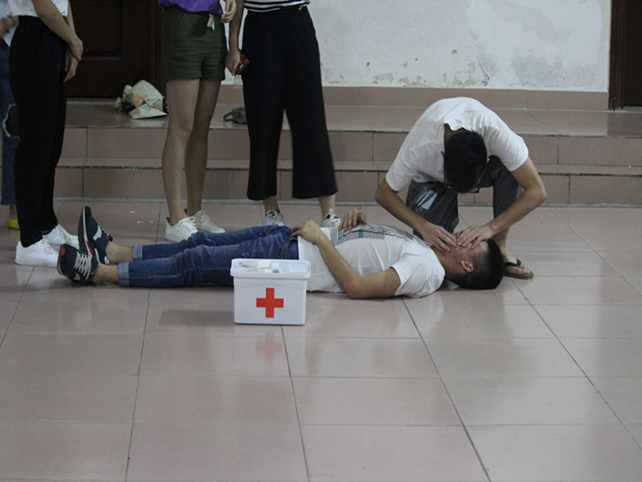 在调研组的户内培训里,由三下乡指导老师陈敬宗与调研小组各成员讨论调研的有关事项,在会议中充分结合当地实际情况考虑相关工作的开展,并一致得出此次三下乡调研活动的主题;在支教组试讲的户外培训中,由此次三下乡的负责人邹鸿贵带领支教组成员进行试讲,各支教组成员分别阐述在三下乡的课程中如何上课、上课内容以及上课速度等问题,并且与负责人一起讨论注意事项以及上课期间突发事件的解决方法;在后勤组突发事件的户内培训中,由后勤组组长陈纪萱带领全体小组成员进行培训,首先有经验的成员讲解常规药品的使用方法和突发情况的解决方案,其次再进行相关示范,成员轮流进行实地操作。