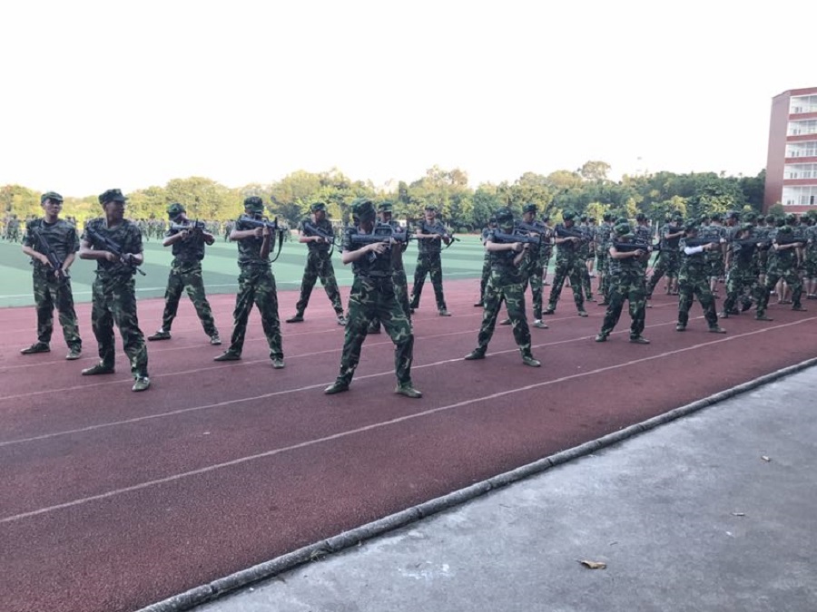 少年强,则国强。在校园的某一处,有一个特殊"部队"——狼牙队。在军训中,为了让新生们能够切实感受到中国军人保护国家的使命感,特此模拟解救"人质"的情境。在这个特殊方阵的训练过程中,每个人都代入好自己在模拟情境中的角色,不管在地上翻滚多少次,也不管在烈日下训练有多么辛苦,即使在训练过程中有受伤的情况发生,但他们仍旧坚持着,不放弃的精神正是我们当代大学生应有的精神。