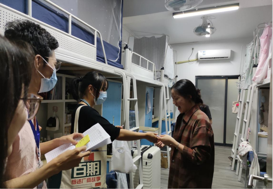 本次检查学生宿舍1栋、2栋、7栋、21栋(北)四栋学生公寓共计15间宿舍。在检查宿舍时,班主任孙兴、辅导员姚凡亲切与同学们互动聊天,并且强调宿舍严禁使用大功率电器、宿舍门口不得堆放垃圾杂物、保持宿舍干净整洁等。本次的卫生检查,班级整体情况良好,宿舍学习风气、整洁度都值得表扬。