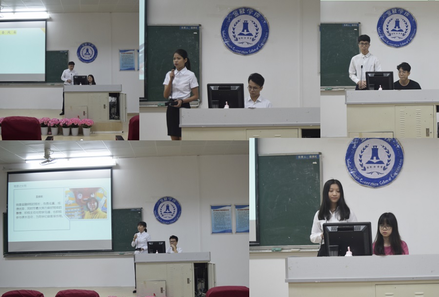 表彰大会的第一个环节是优秀班级汇报环节,依次通过金融六班、金融四班、投资一班、投资二班以及金融八班对各自班级进行精彩纷呈的介绍,展现了各班优异的班风、学风和团结奋进的班级氛围。本次班级汇报主要是通过班级的班委对各自班级的班级概况、班级特色、班风、学风以及获奖情况等内容的介绍,从不同的班级风貌中感受过去一年里17级整体的优异表现,促进相互学习,共同进步,以优秀集体和优秀个人为榜样,带动17级整体成员在新的一学年里以更加积极的精神状态进入新的学年。