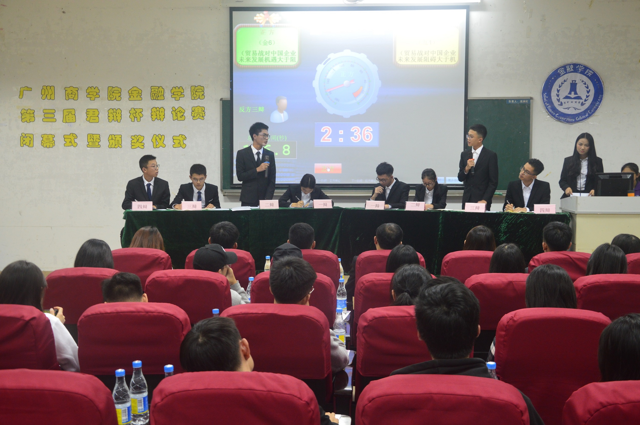 经过积分赛、四强赛、半决赛、决赛一路上的金戈铁马,硝烟四起,这场“有声”的战争终于在昨晚落下了帷幕。回首一个多月的赛程,留下了满满的回忆,各班辩论队伍为观众们呈现了一场场精彩的视听盛宴,经过重重突围最终挺进总决赛的两支队伍分别是:18级金融6班和18级互联网金融1班。