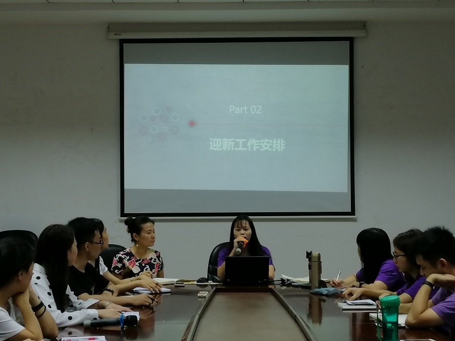 紧接着,团委副书记何润惠为大家讲述了迎新工作的具体安排,其中包括新生报道的流程、新生宿舍区的具体位置及团学干部的工作范围。她表示,身为紫衣人的一份子,走出去代表的就是金融学院的精神风貌和素质教养;身为团学干部,要成为同学们学习看齐的标杆,在接下来的迎新工作中,要做好带头表率作用,以热情饱满的态度去迎接即将到来的新同学、新伙伴。
