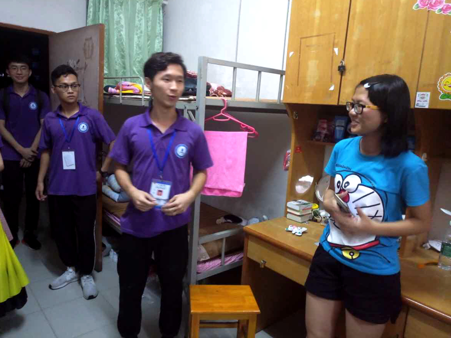 此次走访寝室活动中,老师们各走访了男女生宿舍各2栋,老师们亲切地向大一新生询问他们对大一学习和生活上的未来规划,并给予了他们肯定和提出了自己的建议。此外,还嘱咐新生要注意天气变化,保重身体。团学干部与新生们热情地打招呼,并向还在迷茫不知大学生活如何开始的大一新生分享了自己的大学第一年的生活学习经历,并解答了新生对大学军训疑问,告诉他们军训不可怕,坚持最重要。