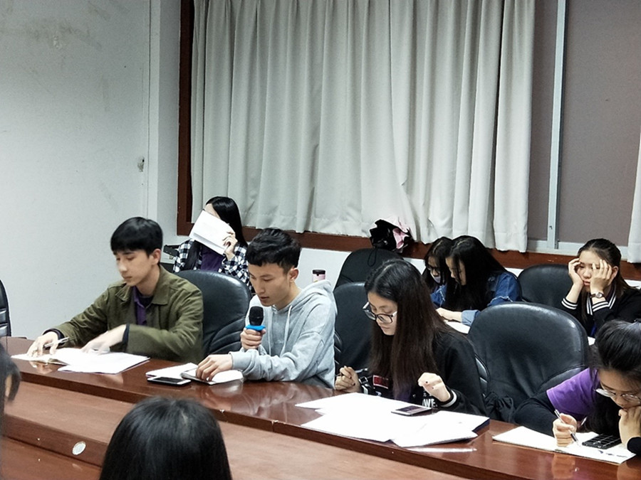 在新的一个学期里,为力创更辉煌的团委,规划好接下来的工作,我院于2018年4月16日在二政108开展了第二学期的第三次全体干部会议,出席本次会议的有,金融学院团委书记叶剑敏,辅导员吴茜茜以及全体团委干部。