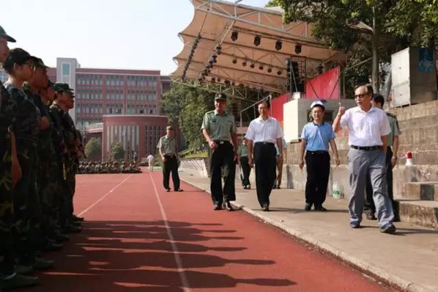 上午,杨文轩校长,吕泉荣书记,刘根正副校长,金融学院院长陈石清,副院长张燕,学院书记张雪梅,学校领导亲临训练场地,前来来慰问17级金融学子,查勘军训进程。