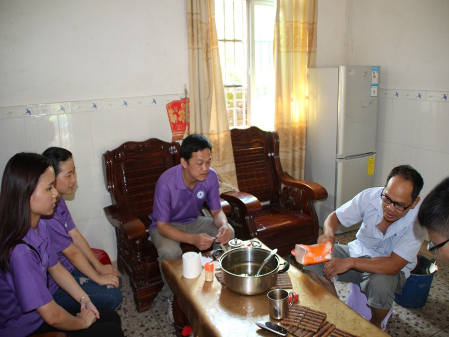 在此次家访活动中,为了提高效率,全体志愿者被分成三批分别进行家访。相关志愿者与被采访的学生同行回家。在回家路上,志愿者会与了解学生家里的大致情况,并拉近与学生的关系,树立大哥哥大姐姐的形象。到了学生家里,志愿者会与学生家长聊家常,了解学生家里的基本情况与学生的性格爱好,并做好记录以备未来几天在教学上因材施教;除此之外,志愿者们还会向家长汇报学生在校的学习和表现情况,让家长们安心放心宽心。我们此次的家访活动获得了家长们的热烈欢迎,家长们还纷纷拿出土特产犒劳我们的志愿者,以表感谢和支持此次的三下乡活动。