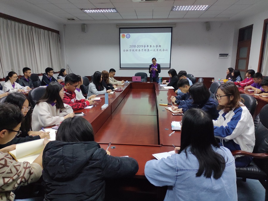 为了在新的学期中更好地规划完成工作,金融学院团委于2019年2月27日晚在第二行政楼308会议室开展了2018-2019学年第二学期的第一次系统会议。出席本次会议的有金融学院团委书记曾梓恒、团委副书记何润惠、团委各部门部长以及全体干事。