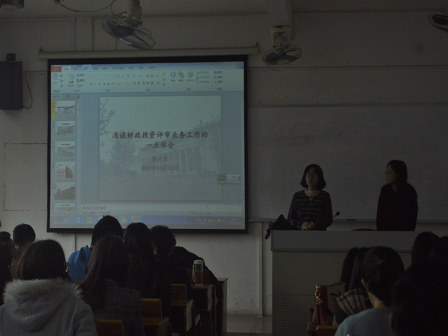 本次的授课,首先以陈大莘老师的自我介绍和工作内容介绍拉开了的帷幕,陈老师向同学们讲述了她在财政局从事的主要工作。接下来陈大莘老师讲述了一些工作感悟,她告诉同学们进入一个新的部门不是想象中那么简单,而是要通过不断地学习积累经验才能够在部门稳定下来,同时不停工作会透支身体,提醒同学们尽量要减少加班熬夜,合理安排学习时间。然后她详细介绍了作为一名评审人员应该具备哪些条件,特别强调要树立好良好的职业道德以及严格遵守劳动纪律。最后,陈大莘老师向同学们系统地介绍了相关的法律法规文件,以及给同学们分享了一些工作调动后的感悟,她说职业调动最深的感受是新岗位需要的专业知识会更强。