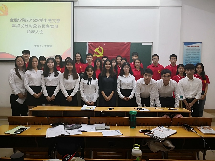 此次会议的召开,为金融学院16级学生党支部注入了新鲜血液,增添了新的活力。转为预备党员的同学要继续发扬先锋模范作用,继续学习党的知识,随时与党中央保持一致,为我院的整体发展做出应有的贡献