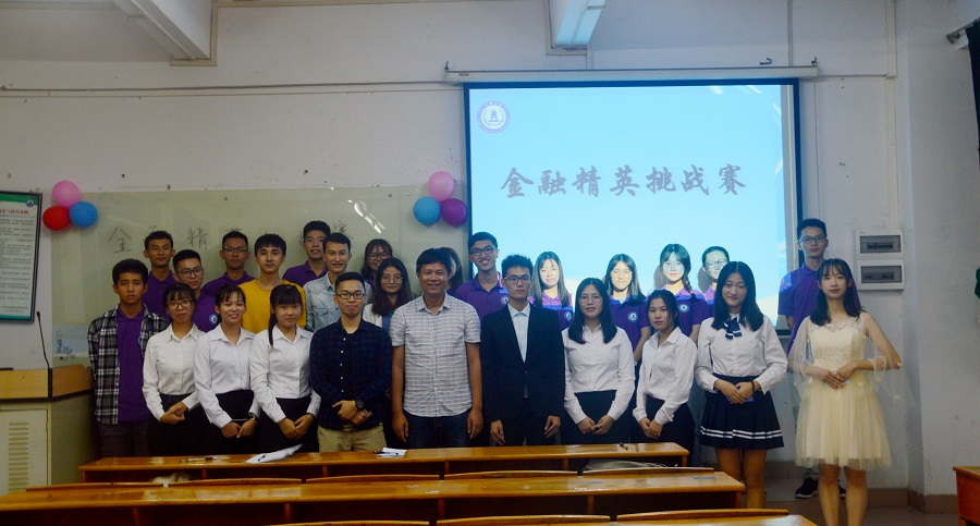 为了展现2018年广州商学院学生科技学术节的丰硕成果,推进我校学子科技创新和自主创业工作,金融学院于10月25日19:00在第三教学楼201教室举行了“金融精英挑战赛”活动。此次挑战赛由共青团广州商学院委员会主办、共青团广州商学院金融学院委员会承办。出席本次活动的嘉宾有金融学院团委书记曾梓恒和15级辅导员吴茜茜老师,以及上届团委书记处的赖兆贤、刘慧、宋俊军。
