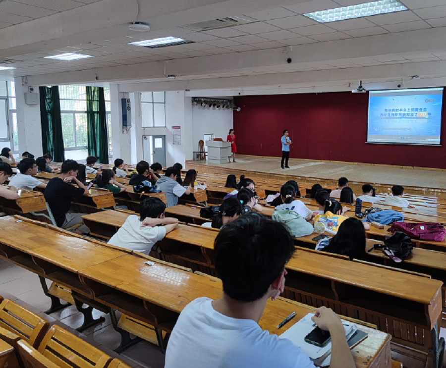 董老师首先就当今社会的就业形势作了系统分析,指出当代大学生就业形势复杂而严峻,也结合其以前的求职情形分享了大学生就业过程的艰难经历,并向学生们展示了相关图片,印证了各类招聘求职活动中大学生求职难的局面。其次,董老师向同学们分析了规划就业必须“未雨绸缪”的原因,通过当今社会大学生的就业状态和就业数据要求大学生应对自身未来求职方向予以明确,尤其是要从个人兴趣出发,并持续加强学习,提高业务本领。最后董老师向同学们展示了历年高校毕业生人数和本科以上毕业生就业数据,说明了每年“最难就业季”的真实情况,并强调了在当今中国,本科以上毕业生人数仍然较稀缺,各位同学当抓住大好青春,继续深造,积极考研,给了广大将走上实习岗位的准毕业生和对将来就业充满憧憬学生予以巨大的信心。