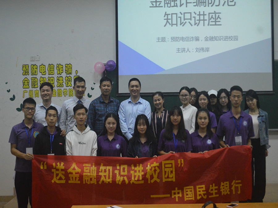 为了提高同学们的金融诈骗防范意识,预防电信诈骗,金融学院于11月14日在四教308举行金融学院防范电信诈骗的专题讲座,出席本次讲座的有民生银行新塘支行行长魏强,小微团队队长、我院09级毕业生李泰平,财富经理蓝凯欣,凤锦苑社区支行主管、我院09级毕业生刘伟岸,金融学院党总支张雪梅以及学院师生代表。