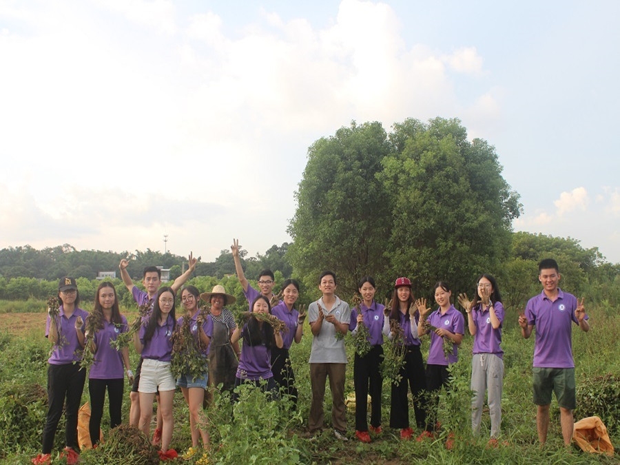 青春逐梦志愿服务队全员随着下课铃响在杨子坑小学教室前集好队准备务农。每天出发前陈敬宗老师提醒志愿者们注意安全,小心蚂蚁蜜蜂等昆虫,提醒志愿者们带上水和止痒消毒的药膏药品。到达现场,志愿者们纷纷撸起裤腿下田干。起初志愿者们拔花生的动作较为生疏,在老师和农户阿姨的帮助下动作渐渐娴熟起来,热情的农户阿姨还给志愿者们送水。天色渐黑,志愿者们汗如雨下,在美丽的晚霞下坚持完成了拔花生和摘花生的农活。最后跟着老师踏着乡间小路疲惫并快乐地走回杨子坑小学。
