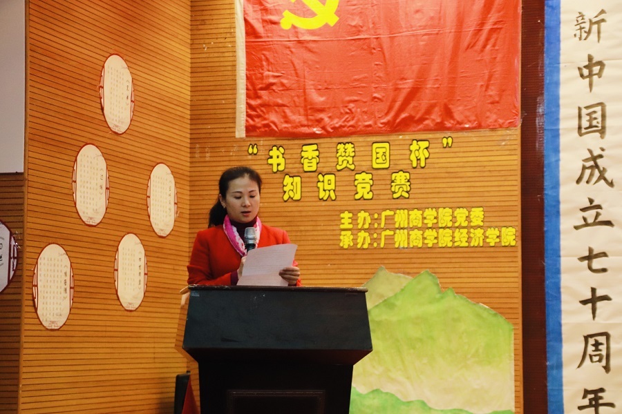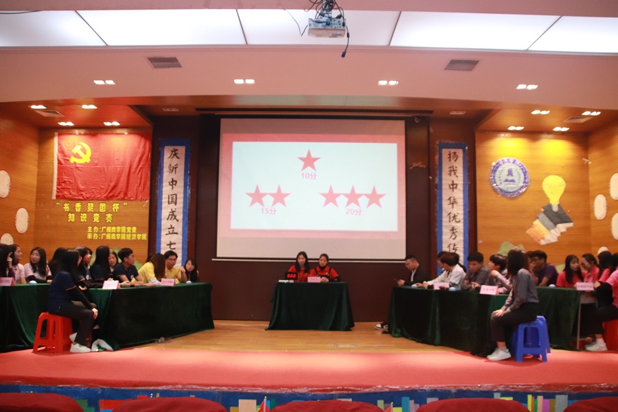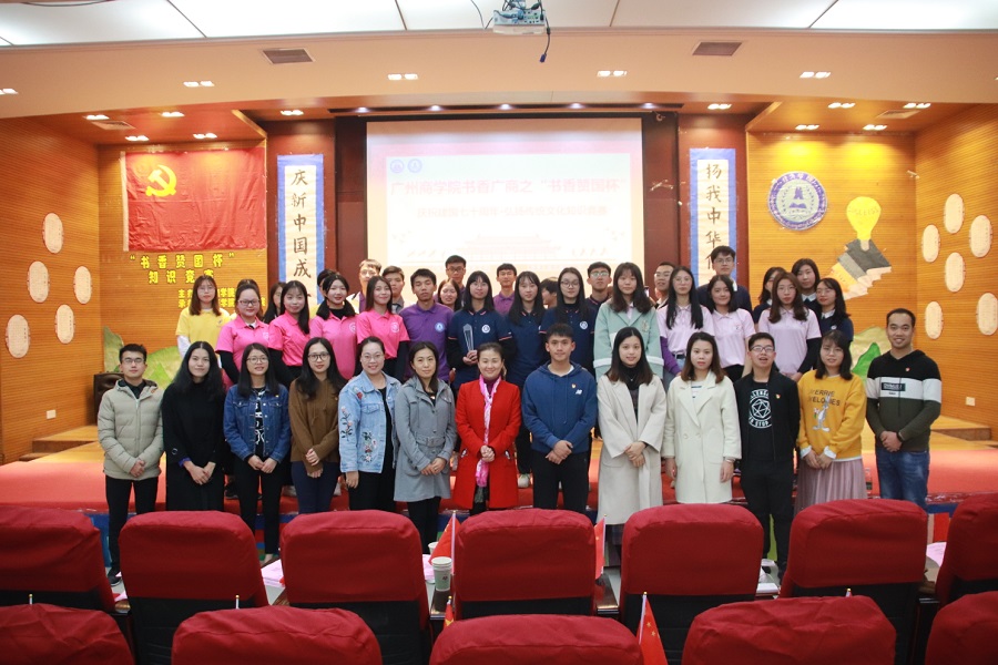 为培养学生的阅读习惯,营造浓厚的读书氛围,提高同学们的精神境界和文化修养,推进书香广商品牌建设,由广州商学院党群工作部主办,经济学院团委承办的广州商学院书香广商之“书香赞国杯”——庆祝新中国成立七十周年·弘扬传统文化知识竞赛决赛于四教学术第一报告厅成功举办。