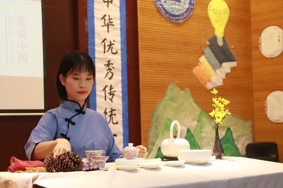 竞赛分为必答题、抢答题、风险题三个环节,以优秀的传统文化、中华人民共和国成立七十载以来的政治、经济、文化、社会、生态等各个方面的辉煌成就、习近平新时代中国特色社会主义思想等为竞赛内容。在竞赛过程中选手们沉着答题,踊跃抢答,观看竞赛的观众们不仅为选手们的发挥而热烈鼓掌,还积极参与了全民线上答题和幸运观众抢答,互动环节将整场比赛的气氛推向了高潮,台下的同学们争相回答知识竞赛的各种问题,把满腔的爱国主义精神和坚定信念永远跟党走的理想斗志展现的淋漓尽致。而特邀嘉宾的茶艺表演,茶香飘荡,从一片茶叶的角度讲述了中国的变化,娴熟的冲茶手法,不仅展现着中国传统文化——茶艺的魅力,也彰显着中国的文化自信。
