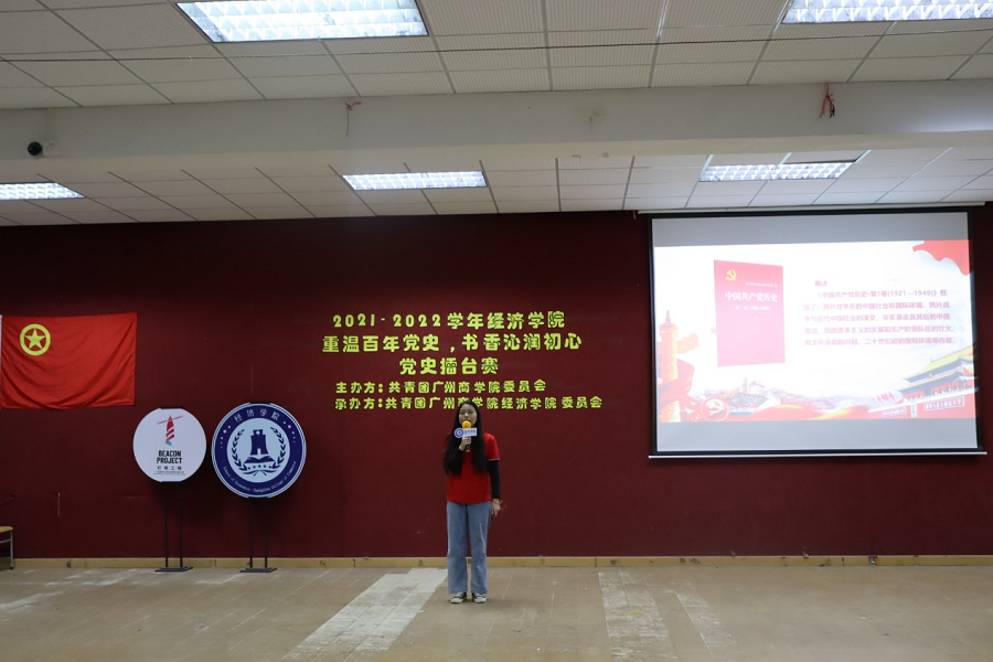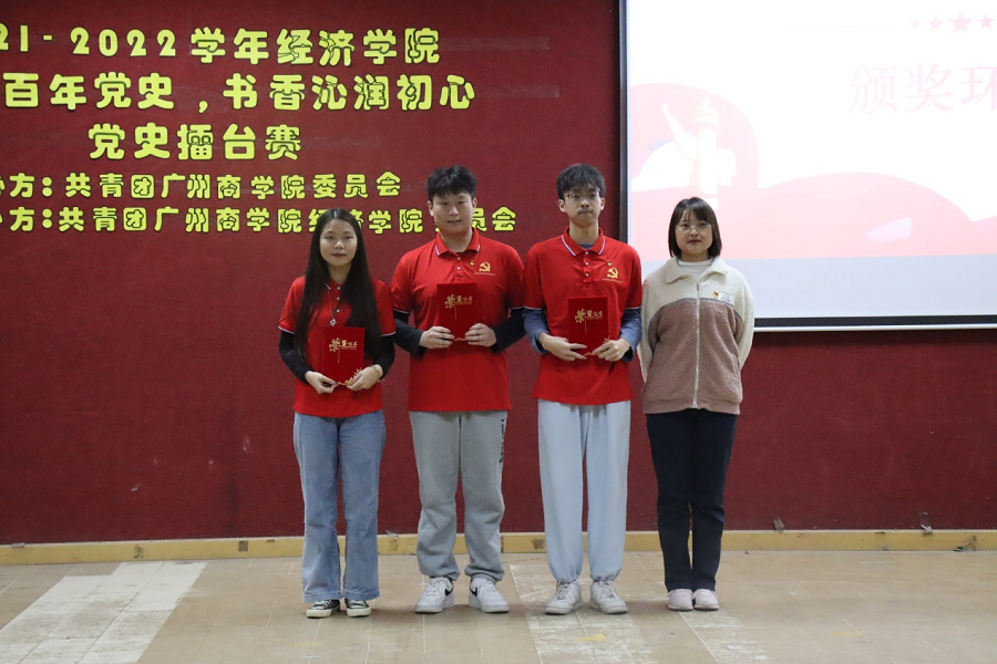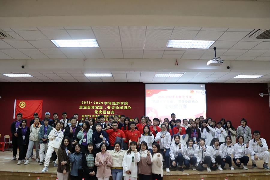 展青年风貌,谱爱党新篇。为让当代大学生回望百年历程,学习中国共产党的伟大精神,从中国共产党的历史和精神中汲取营养,涵养心灵。11月23日晚,经济学院团委在一教206举办了2021-2022学年“重温百年党史,书香沁润初心”党史擂台赛。经济学院党总支组织委员姚凡老师、18级第一学生党支部书记魏楚玲老师、18级第二学生党支部书记巫进娣老师、19级学生党支部书记陈丽红老师、20级学生党支部书记藏丛杉老师、经济学院团委书记唐朝老师、19级辅导员钟泽婷老师、21级辅导员黄泽妙老师出席本次活动。