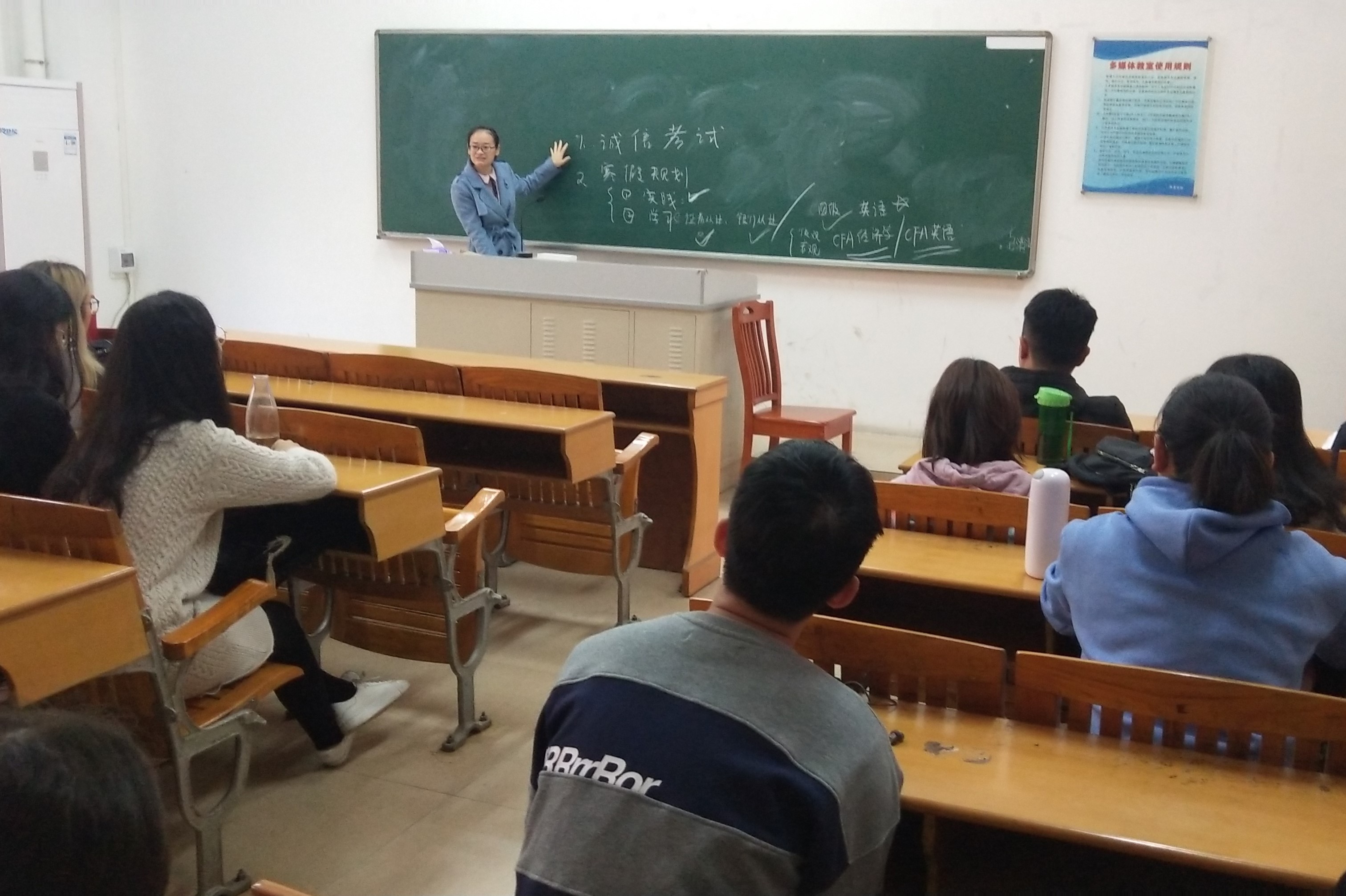 期末考试将至,为了培养同学们树立诚信考试,文明做人的理念,以积极向上的状态迎接即将到来的期末考试。2019年12月26日早上,经济学院2019级金融1班在四教211举行了期末诚信考试主题班会,班主任王姣老师出席本次班会。