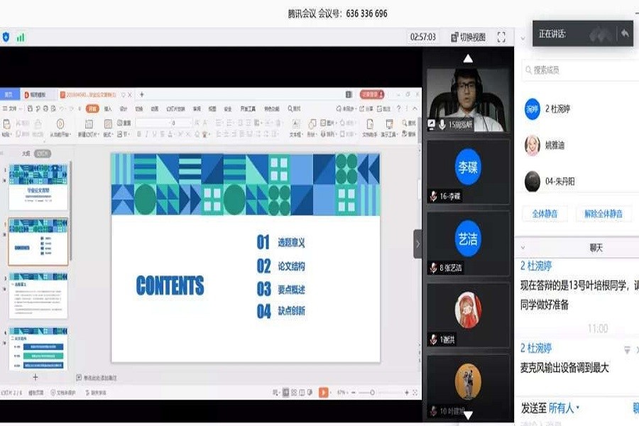 感谢学院领导答辩前的各种具体指示与答辩过程中的光临与指导,谢谢一大早学院领导及时协调了网络中心,解决了不能上网问题,创造了良好的客观环境,使得今天的线上答辩能够顺利进行;感谢杨悦老师和姚雅迪老师,利用个人时间,做了大量细致的准备工作;谢谢辅导员老师,从建群到现在,自始至终在关怀着同学们;感谢同学们的反复演练、辛苦付出,特别是答辩助理谢洪同学和杜涴婷的配合与支持!我们同心协力,顺利完成了国贸1组毕业论文16名同学的二辩工作。