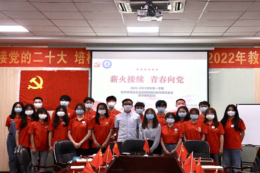 会议在嘹亮的国歌声中拉开序幕。首先,由钟泽婷老师和陈楚亮老师分别进行自我介绍,让助理团成员们对两位老师有初步认识和了解,相信经济学院党总支助理团未来在两位老师的带领下,经济学院党总支助理团会越来越好。