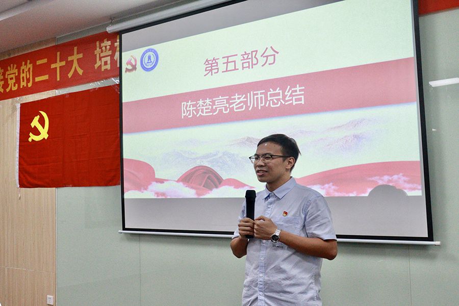 最后,经济学院2022级辅导员陈楚亮老师作总结讲话。陈楚亮老师指出,党总支助理团各成员应全力以赴做好本学期工作,以饱满热情迎接党的二十大胜利召开,要善于在活动中展现担当作为,胸怀大局,发挥好党总支助理团的先锋模范作用。