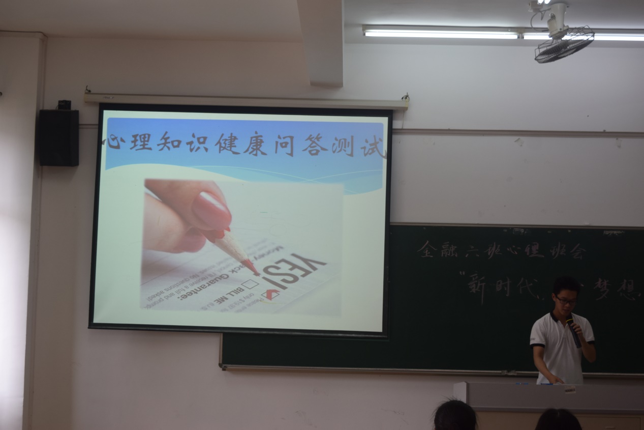 各班班会在心理委员的带领下有序展开。首先,各班都进行了的心理知识健康问答测试,人人都认真地在手机上完成了测试。然后,各班采用的不同形式开展班会,其中有心理健康知识竞答,结合心理方面知识分析重大新闻,表演心理剧,模拟心理咨询以及播放视频等方式。这让同学们从思想上、精神上都有着很大的收获,增加了他们对心理健康知识的认识同时,也让同学们脸上洋溢着开心的笑容,班里的凝聚力也得到了进一步的提升。