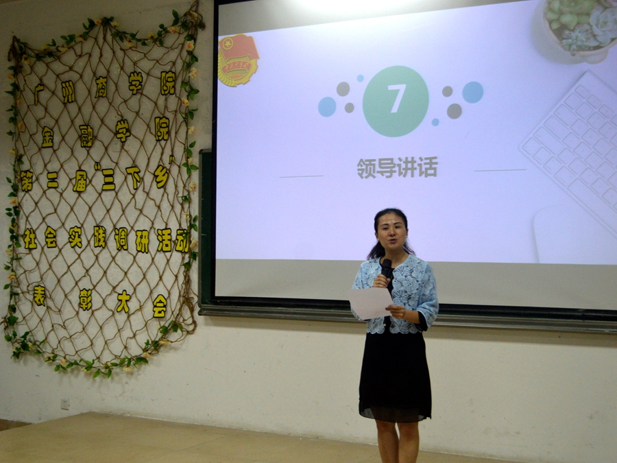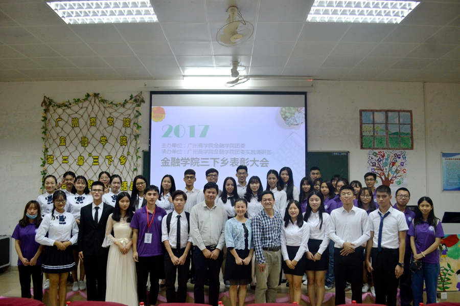 为了表彰参与第二届“三下乡”社会实践调研活动的优秀志愿者,提高学生们参与该活动的积极性,金融学院于2017年10月27日晚在第二学术报告厅召开第二届“三下乡”社会实践调研活动表彰大会。出席本次大会的嘉宾有金融学院党总支书记张雪梅、金融学院团委书记叶剑敏、三下乡指导老师陈敬宗以及校团委和各二级学院实践调研部干部。