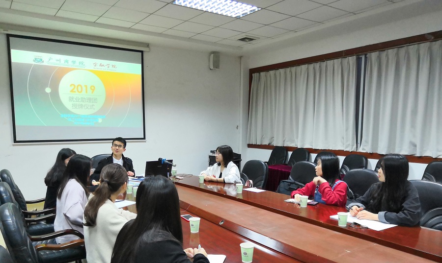 为做好金融学院2019届毕业生就业指导工作,加快金融学院校友分会筹备进程。金融学院2019届就业助理团于2019年3月6日19时在第二行政楼108会议室举行了全体2019届就业助理团成员的授牌仪式。本次活动由2019届毕业班辅导员冯羽老师主持。