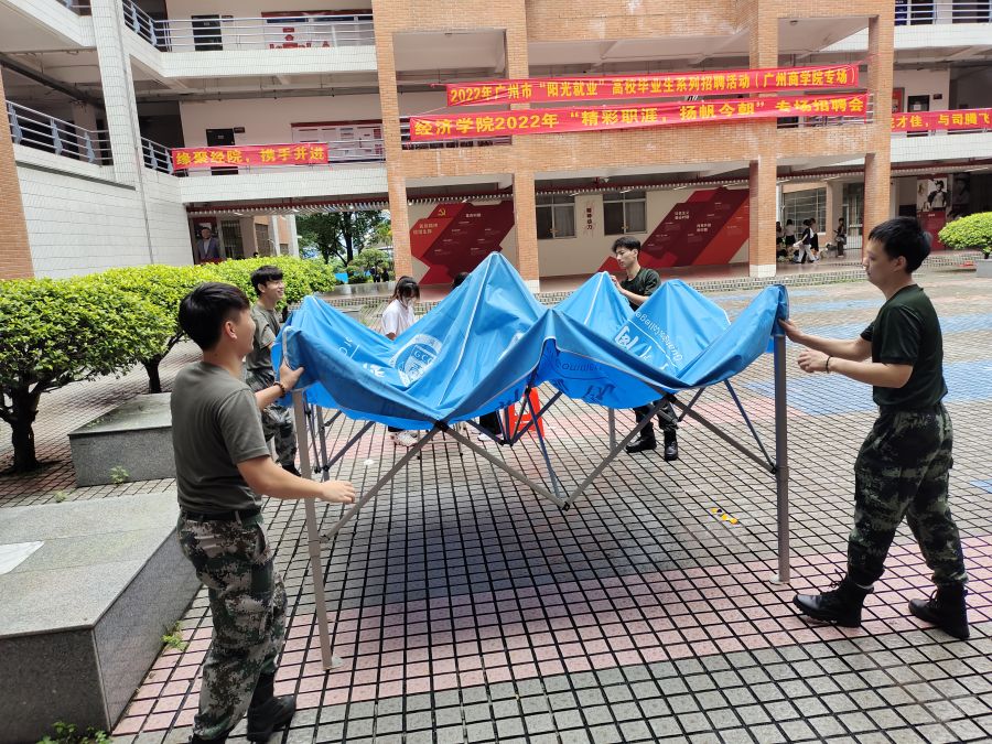 6月12日-26日,经济学院征兵工作小组积极开展毕业生志愿专项服务,为2022届毕业生专场招聘会、毕业照及毕业典礼等工作保驾护航。在2022届毕业生专场招聘会中,从企业进校布置会场到招聘会结束清场,经济学院征兵工作小组始终主动担当有作为,做到帐篷搭建井然有序,桌椅摆放整齐划一,路口指引一目了然,现场秩序有条不紊,撤场清退干净整洁,期间积极主动帮助企业在会场找到摊位,热情引导求职毕业生到心仪的企业摊位咨询,认真负责为每一位到招聘会的学生认证第二课堂学时。充分展示了经济学院征兵工作小组用“铁一般纪律”凝神铸魂,以实际行动践行“退伍不褪色”的使命担当。