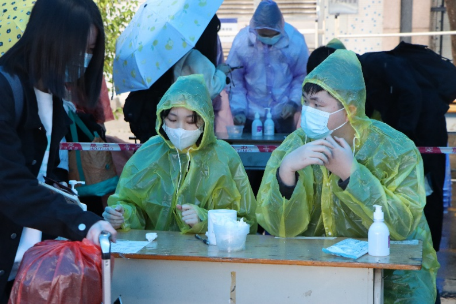 2月19日,经济学院师生深入贯彻“我为群众办实事”的奉献精神,党总支书记张雪梅组织带领4名党员教师,140名党、团员学生志愿者开展春季返校志愿活动。以实际行动精准落实常态化防控各项措施,保障返校学生安全与健康,助力学校春季学期学生开学返校工作。经济学院全体志愿者们冒着寒风大雨,严格落实疫情防控要求,佩戴口罩,身穿雨衣,集结在学校北门,各司其职,以饱满的热情投身志愿服务,引导返校学生到校门口的安检通道配合工作人员入校消毒、体温检测、身份核验、查看粤康码及核酸证明、帮助同学们搬运行李等,在师生志愿者们的齐力协作配合下,“消、测、核、查”四项工作一气呵成,返校工作有序进行。