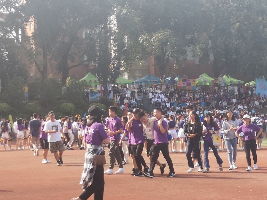在这为期两天的校运会上,金融学院团学干部每天在天微亮的时候就到达运动会现场,伴着夕阳的落下离开运动场。在运动员比赛过程中,紫衣人的身影在运动场上奔跑,他们诚诚恳恳服务好每一个运动员,只为让运动员在赛场上能更好的发挥为金融学院争光。作为站在运动员背后的紫衣人,任劳任怨是他们的工作态度,及时给予运动员帮助和关爱,让运动员感受到金融大家庭的温暖是他们唯一的奋斗目标。每一个紫衣人工作的背影都是帅气的,每一句“谢谢,辛苦了!”便是对他们工作最好的肯定和回报。愿所有的团学干部在接下来的生活学习里,明白自身肩负的责任,在服务好金融学院与同学的同时,能够自己得到了成长,变成更好的自己!