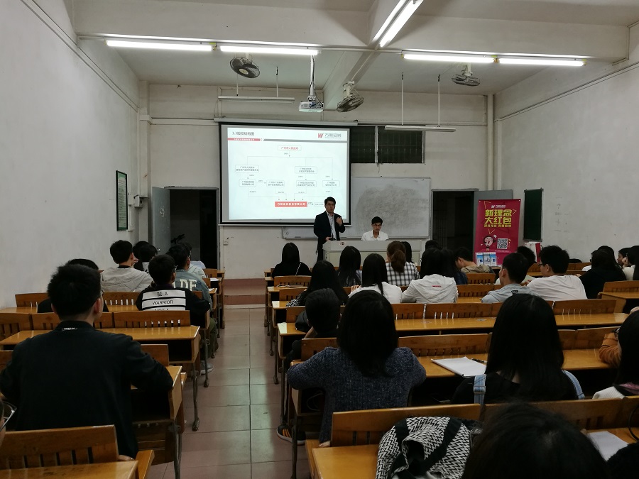 为了更好地让同学们了解本专业的相关知识和明白纸上得来终觉浅的道理,所以金融学院决定开展一次实盘炒股比赛,经过宣传,报名等前期的一系列准备。在 4月14日晚上19:30分,金融学院年级委员会在第一教学楼103如期开展了“广金杯”实盘炒股大赛的第一次培训讲座。 万联证券营销市场总监何政先生,深圳营销市场总监蔡泽秀小姐,深圳耀石资本管理有限公司的投资经理谢先生出以及各年级全部参赛人员出席了这次培训讲座。
