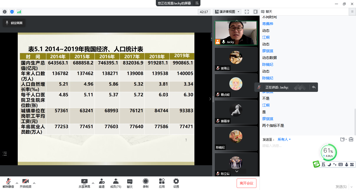 本次公开课的主要授课内容为《统计学原理》第五章的时间序列。叶老师首先向同学们阐明了本次课程的学习目标与重难点,随后通过问题导入、情景教学等教学方法深入浅出地介绍了时间序列的定义、基本要素与类型,并在授课过程中巧妙地融入课程思政内容,引导学生树立正确的消费观等,从学生回答教师课堂提问情况来看,学生对基本知识点的掌握牢固,体现了以“学生为中心”的教学理念与方式,课堂教学效果良好。