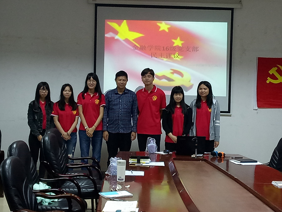 按照学校党委的统一部署,结合学生支部党员发展情况,2018年3月26日晚上8:30,金融学院16级学生党支部在二政108召开了党支部民主评议会议,参与评议会议的有党支部书记叶剑敏、支部正式党员、支部预备党员共7名。支部预备党员郑杏娇主持本次会议。