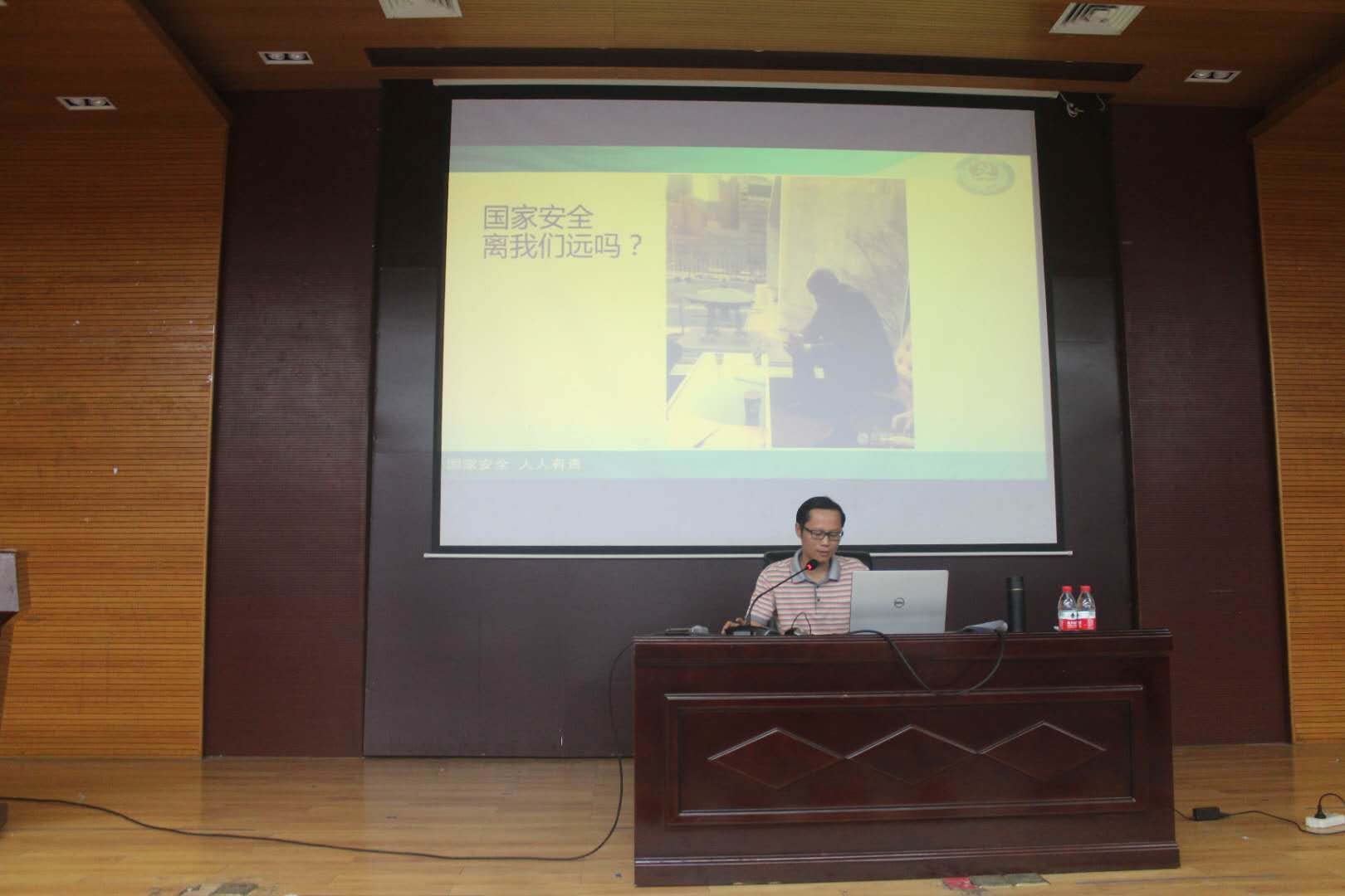 10月11日晚上七点,金融学院在第四教学楼第一报告厅开展国家安全教育讲座,此次讲座参加者有新生辅导员曾梓恒和范英琦以及全体新生。电子商务管理学院党总支蔡文德书记主讲本次讲座。