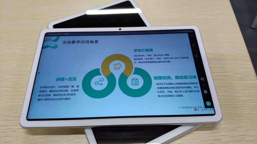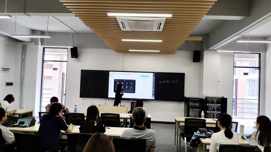 迎评促建,在校领导和董事会的大力支持下,经济学院在2020年暑期建设了6间智慧课室,均配置86寸大屏一体机,使用华为Mate Pad平板作为教学终端,并配套青鹿智慧课堂互动软件系统。通过青鹿智慧课堂互动软件及青鹿优课平台,可实现屏幕广播,多屏互动,随堂测验,挑人抢答等功能,可实现 BYOD (Bring Your Own Device),满足师生自行携带手机、平板、笔记本电脑等设备便捷接入智慧课堂系统,大大提高学生的学习兴趣并提升了课堂效率。培训过程中,老师们积极参与互动、讨论,经过实操,老师们表示该系统功能强大,操作简便,有助于激发教学灵感,调动学生学习热情,提高教学效果。
