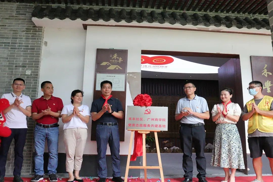 7月11日,在禾丰新村村史馆举行此次三下乡社会实践活动揭牌仪式暨开班典礼。永和街党工委副书记冯志佳、永和街纪工委副书记、纪检监察办公室主任罗建平、禾丰社区第一书记王克乔、禾丰社区党委书记朱健华及其他党委委员、永和街志愿者协会会长黄文锋、我校党群工作部副部长伍有才、经济学院党总支书记张雪梅、经济学院教工党支部书记梁菲菲、经济学院2019级学生第一党支部书记陈丽红、经济学院2019级学生第二党支部书记钟泽婷、经济学院团委书记唐朝、光明先锋队所有成员及本次微服务的所有学生参加此次揭牌仪式暨开班典礼。仪式由经济学院团委书记唐朝主持。