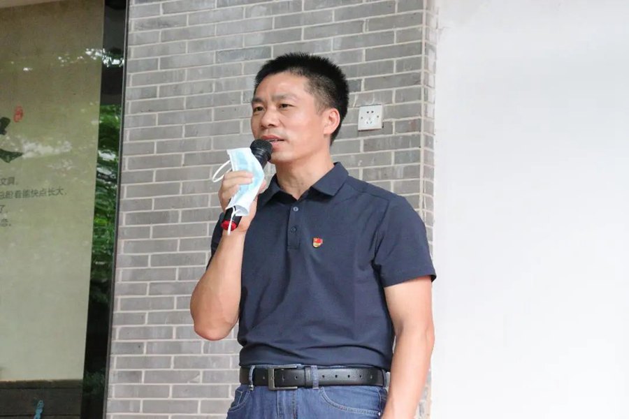 永和街党工委副书记冯志佳致辞。冯志佳书记表示很荣幸与经济学院共同举办此次揭牌仪式,此次共建旨在通过党建引领,带动团委、少先队建设教育,传承红色革命精神,打造禾丰“红孩子”品牌,让孩子们“感”乡村之变化、“悟”振兴之不易、“惜”今日之生活。冯志佳书记对经济学院光明先锋队寄予期望,希望我们要深入践行不忘初心、牢记使命的号召,多多参与乡村建设社会实践,助力乡村振兴,共同建设祖国的美丽乡村。