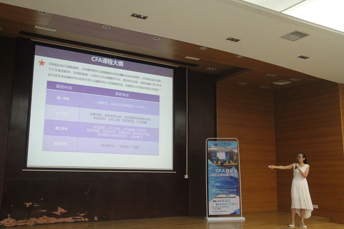 为进一步让16级新生了解金融学院新开办的CFA精英班,我院于9月11日下午在第一报告厅召开CFA精英班宣讲会。我院院长陈石清、金融学院教师王姣、CFA合作伙伴融仕教育集团招生老师吴悦、段诗静,以及金融学院部分辅导员出席了本次宣讲会。