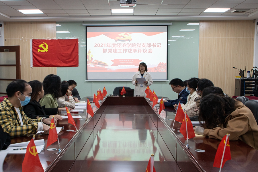为落实基层党组织书记第一责任人职责,全面夯实经济学院基层党建工作,落实管党治党政治责任,进一步推动全面从严治党向基层延伸,提升基层党组织建设水平。1月10日上午,经济学院党总支在第二行政楼108会议室召开2021年度党支部书记抓党建工作述职评议会。经济学院党总支书记张雪梅,各基层党支部书记,总支委员,支部委员及党员代表出席。会议由党总支组织委员姚凡主持。