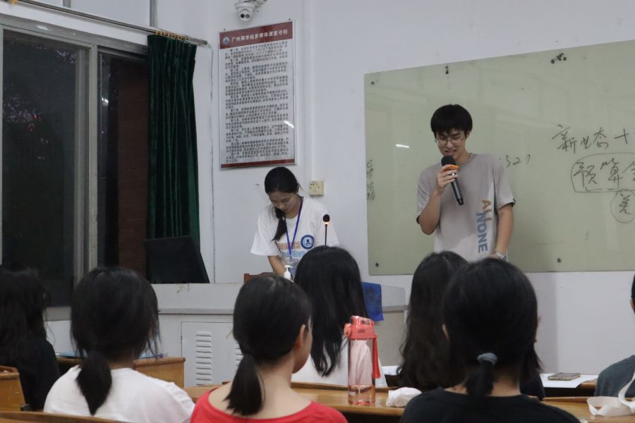 会议伊始,经济学院2021级辅导员黄泽妙老师、杨芳淇老师向萌新们进行了简单的自我介绍,着重强调了要按时参加9月12日学校开展的大规模核酸检测,要把防疫放在首位,严格遵守学校防疫要求,对自己负责,对他人负责,在简单介绍了学校的简要概况后,两位老师对经济学院2021级新生给予了衷心的祝福和热烈的欢迎。随后,各专业助理辅导员为新生同学进行了精彩的个人自我介绍,并告知新生入学有关注意事项和近期活动安排,进一步拉近了助导和新生之间的距离。他们结合自身经验与同学们谈及了大学生活以及大学规划,倡导新生们学会制定自己的学业计划表和合理的生活作息表,成为一名自律、自强的经济学子,助导们的别样分享,为新生带来了大学生活启蒙的第一课。最后,助理辅导员们邀请新生同学做简单的自我介绍。大家踊跃上台,热情洋溢地向同学们介绍自己家乡的风土人情,还有的同学秀了一段家乡方言。新生们趣味十足的介绍,打破了初次见面的生疏,让新生同学快速熟悉了起来。为让同学们撇下懵懂疑惑,助导们还为新同学们耐心答疑解惑,在交流中大家相互认识,现场气氛活跃,笑声掌声不断。至此,经济学院2021级新生入学首次班会正式落下帷幕。